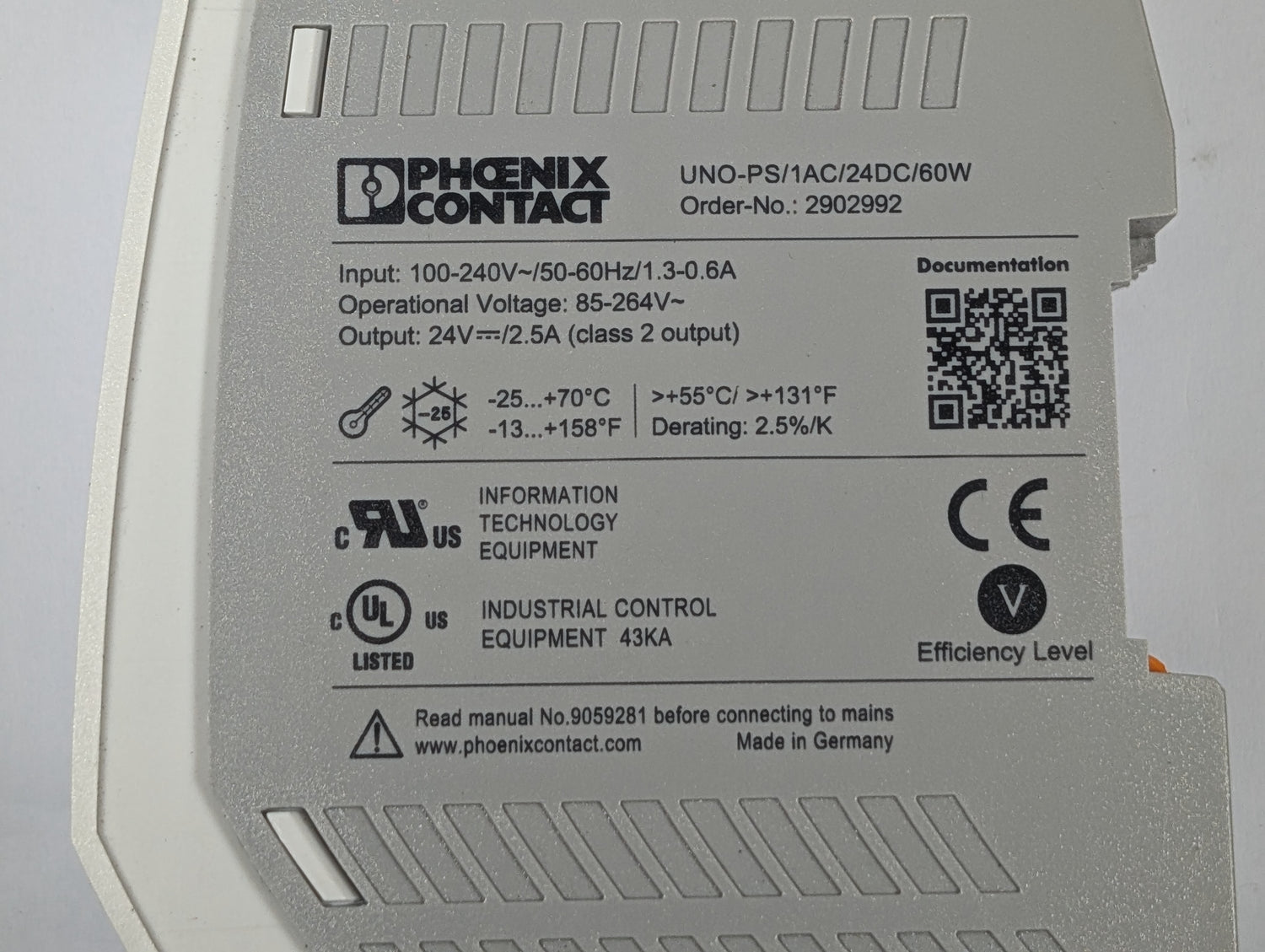 Phoenix Contact - 60 Watt DIN Rail Power Supply - UNO-PS/1AC/24DC/60W - Used - ZUL-LOCK0-00981 is backordered and will ship as soon as it is back in stock.