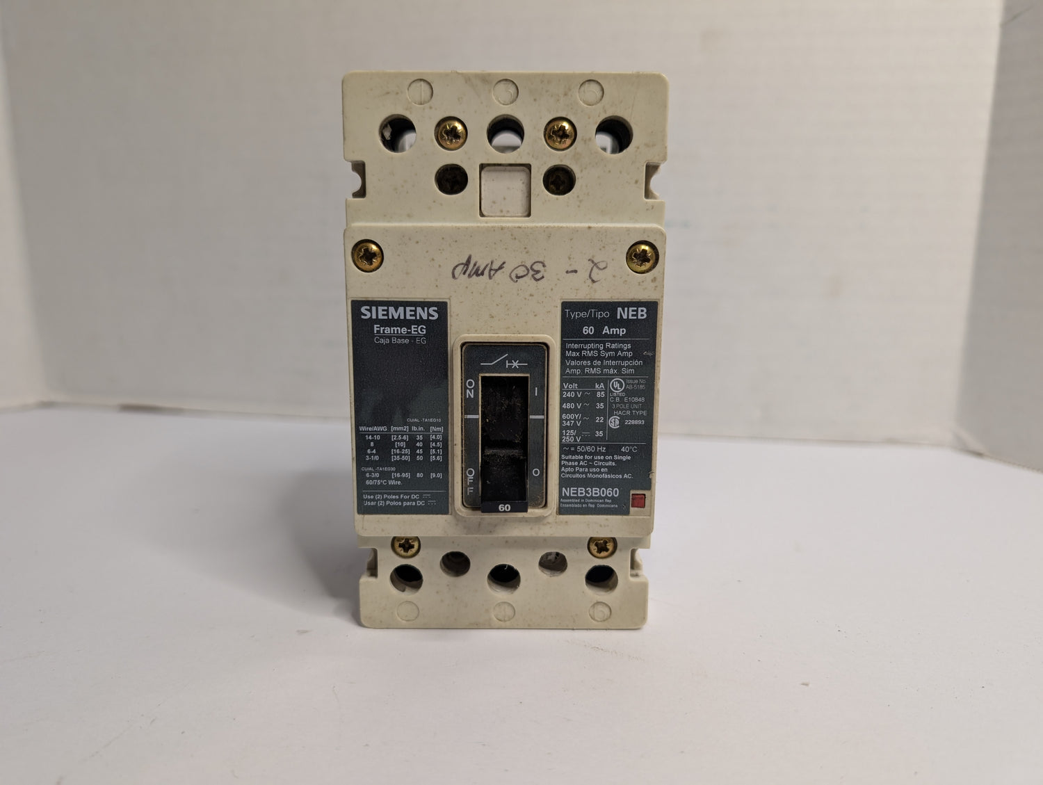 Siemens - 60 Amp Molded Case Circuit Breaker - NEB3B060 - Used - REA-CHES0-00623 is backordered and will ship as soon as it is back in stock.