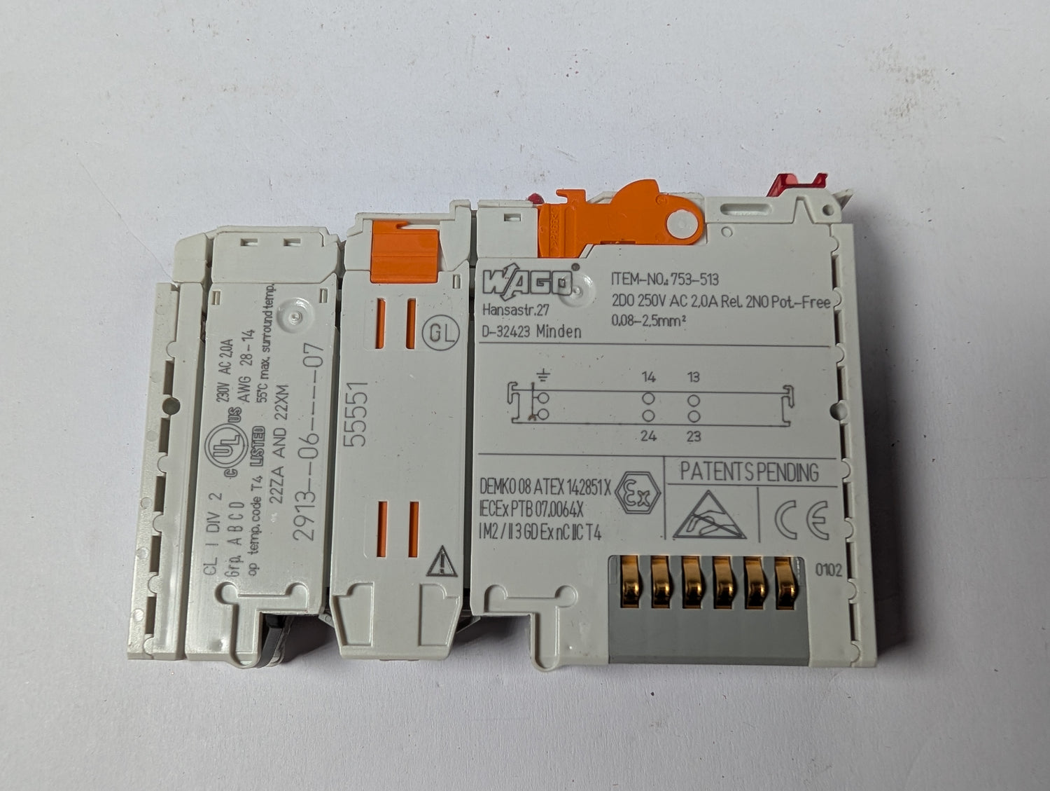 Wago - 2-Channel Relay Output Module - 753-513 - Used - ZUL-LOCK0-00022 is backordered and will ship as soon as it is back in stock.