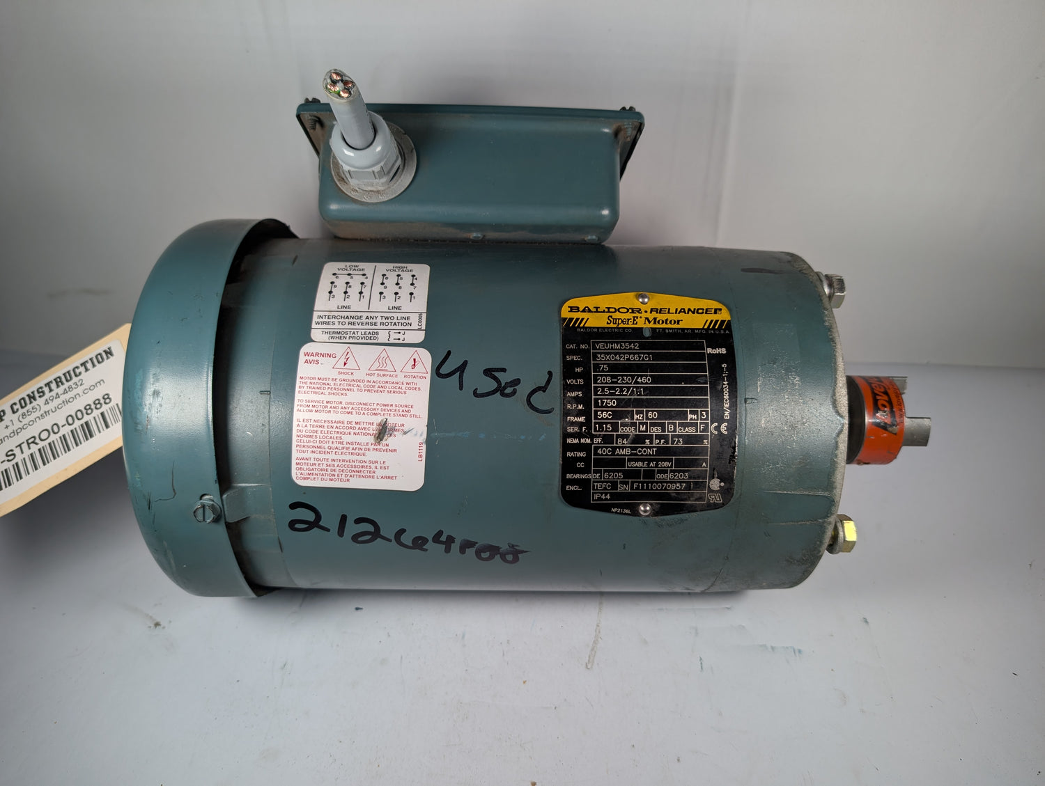 Baldor Reliance - 0.75 HP Electric Motor - VEUHM3542 - Used - GNP-STRO0-00888 is backordered and will ship as soon as it is back in stock.