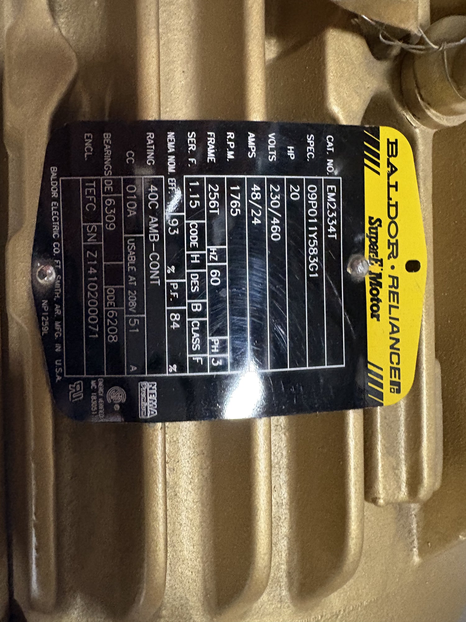 Baldor Reliance - 20 HP Super E Motor - EM2334T - New - ZUL-LOCK0-00518 is backordered and will ship as soon as it is back in stock.