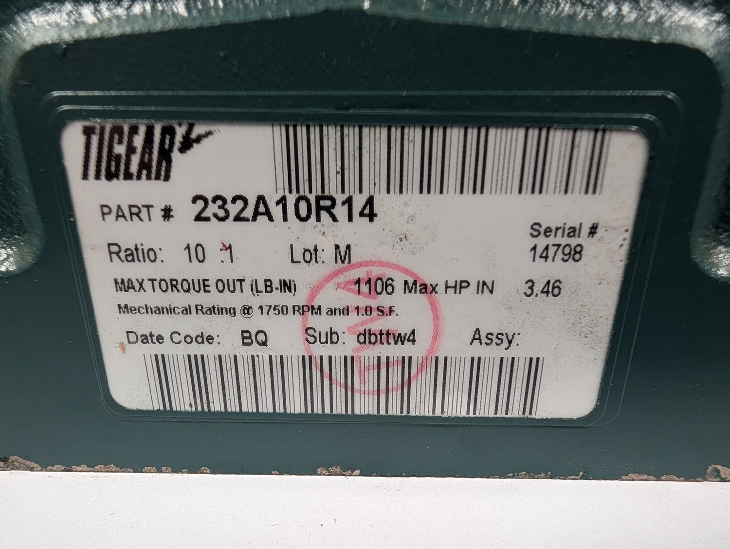 Dodge Tigear - 10:1 Gear Reducer - 232A10R14 - Used - Big Liquidators