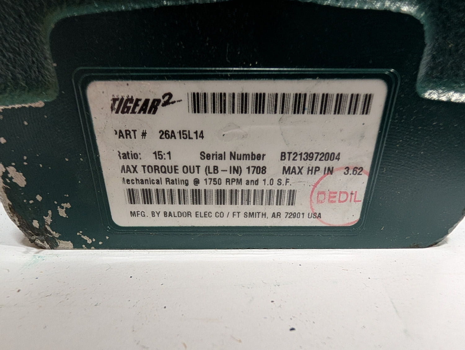 Dodge Tigear - 15:1 Gear Reducer - 26A15L14 - New - ZUL-SPAR0-00608 is backordered and will ship as soon as it is back in stock.