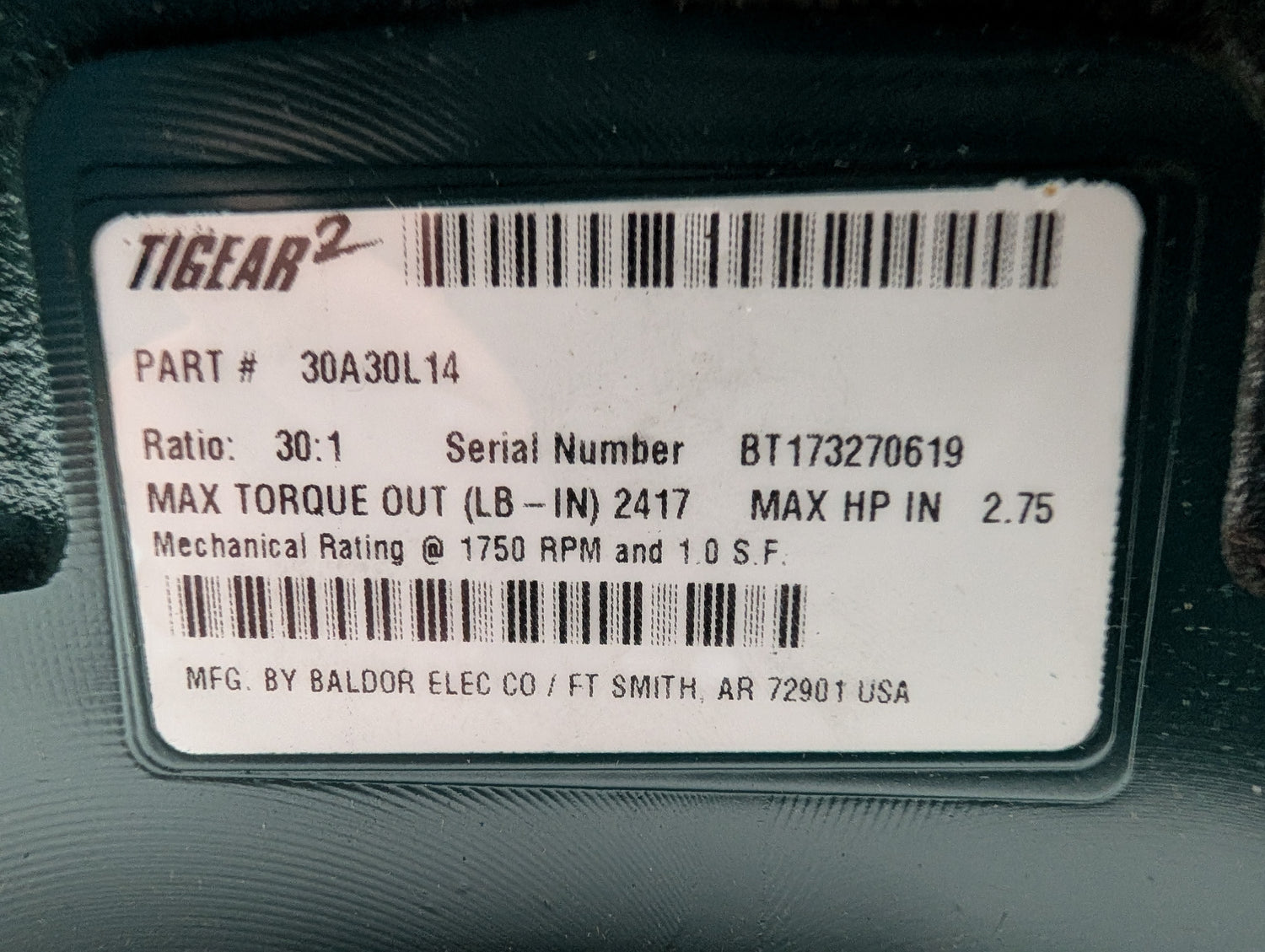 Dodge Tigear - 30:1 Gear Reducer - 30A30L14 - Used - BBB-LASV1-00604 is backordered and will ship as soon as it is back in stock.
