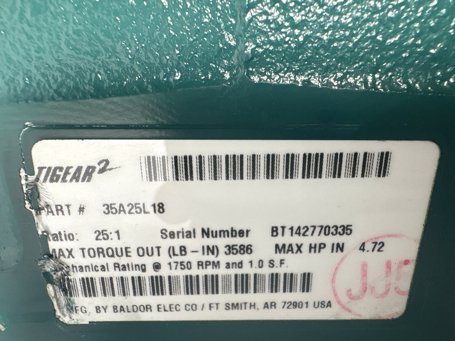 Dodge Tigear - Electric Motor 25:1 Gear Reducer - 35A25L18 - Used