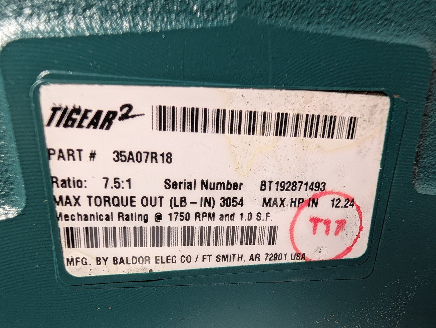 Dodge Tigear - Electric Motor 7.5:1 Gear Reducer - 35A07R18 - Used - ZUL-LOCK0-00980 is backordered and will ship as soon as it is back in stock.