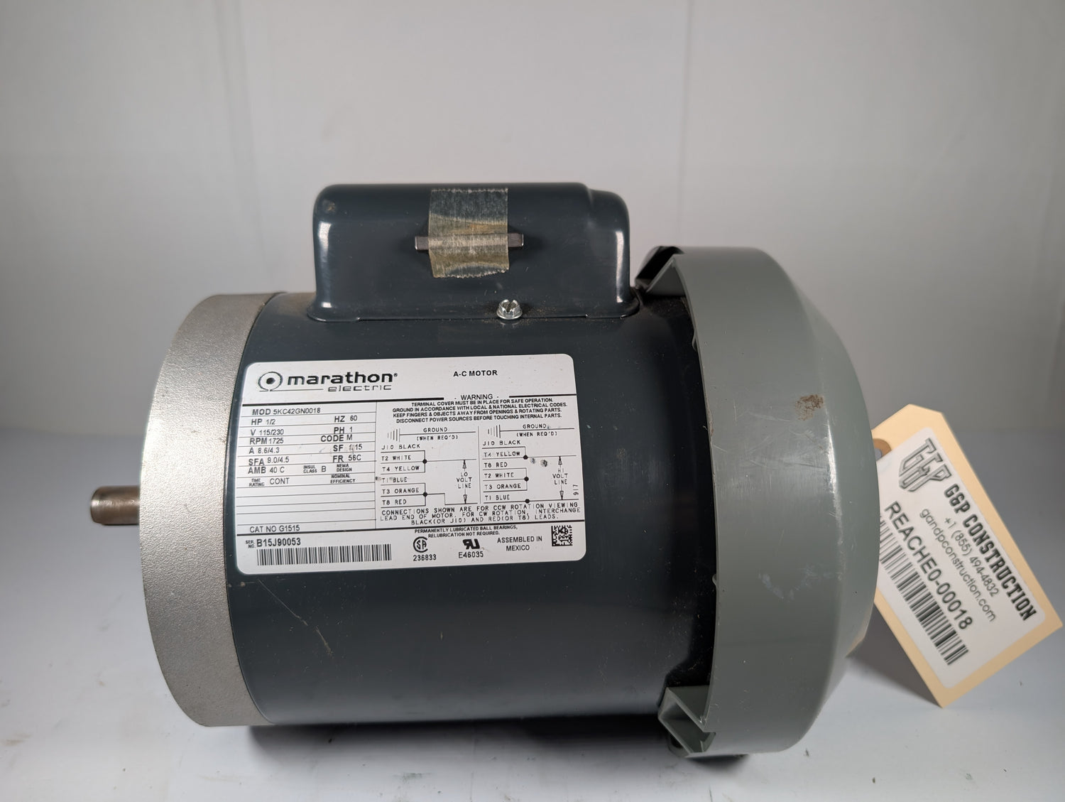 Marathon Electric - 0.5 HP Electric Motor - 5KC42GN0018 - Used - REACHE0-00018 is backordered and will ship as soon as it is back in stock.