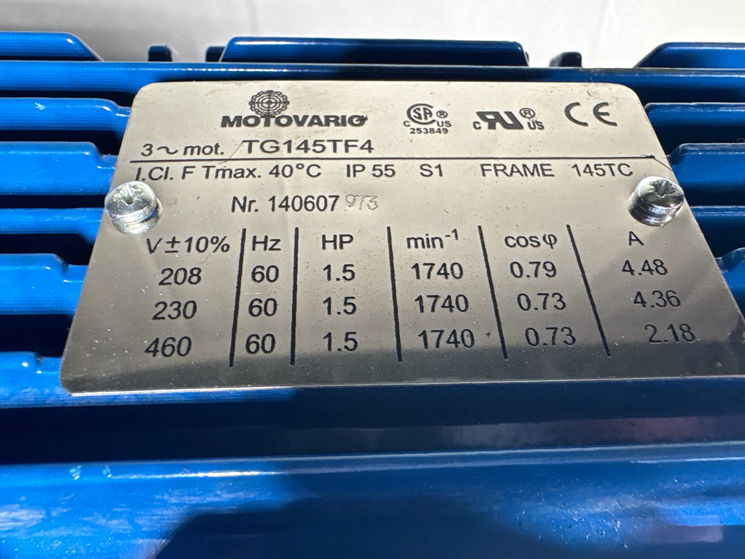 Motovario - 1.5 HP Electric Motor - TG145TF4 - Used - Big Liquidators