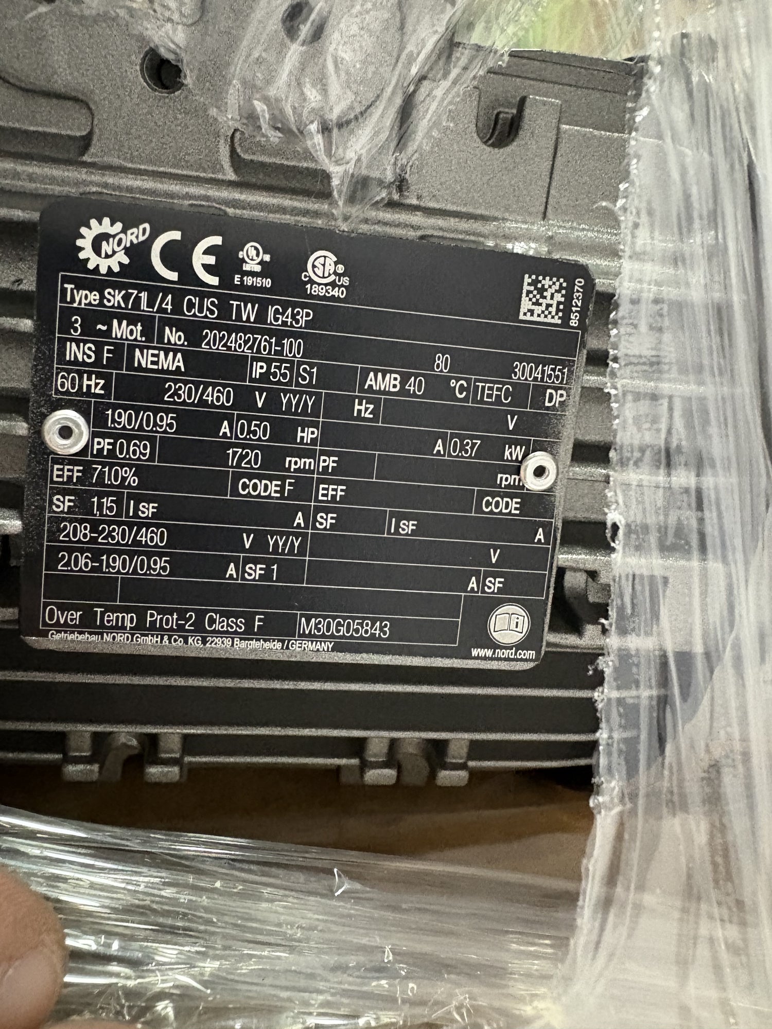 Nord Drive Systems - 0.5 HP Electric Motor - SK 02040AZB - 71L/4 CUS TW - New - Big Liquidators