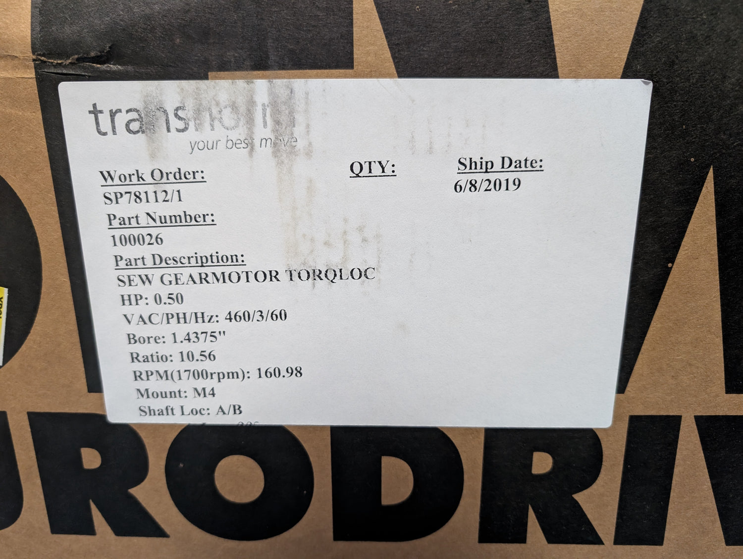 Sew Eurodrive - 0.5 HP Electric Motor - TR4104 - New - ZUL-LOCK0-00428 is backordered and will ship as soon as it is back in stock.