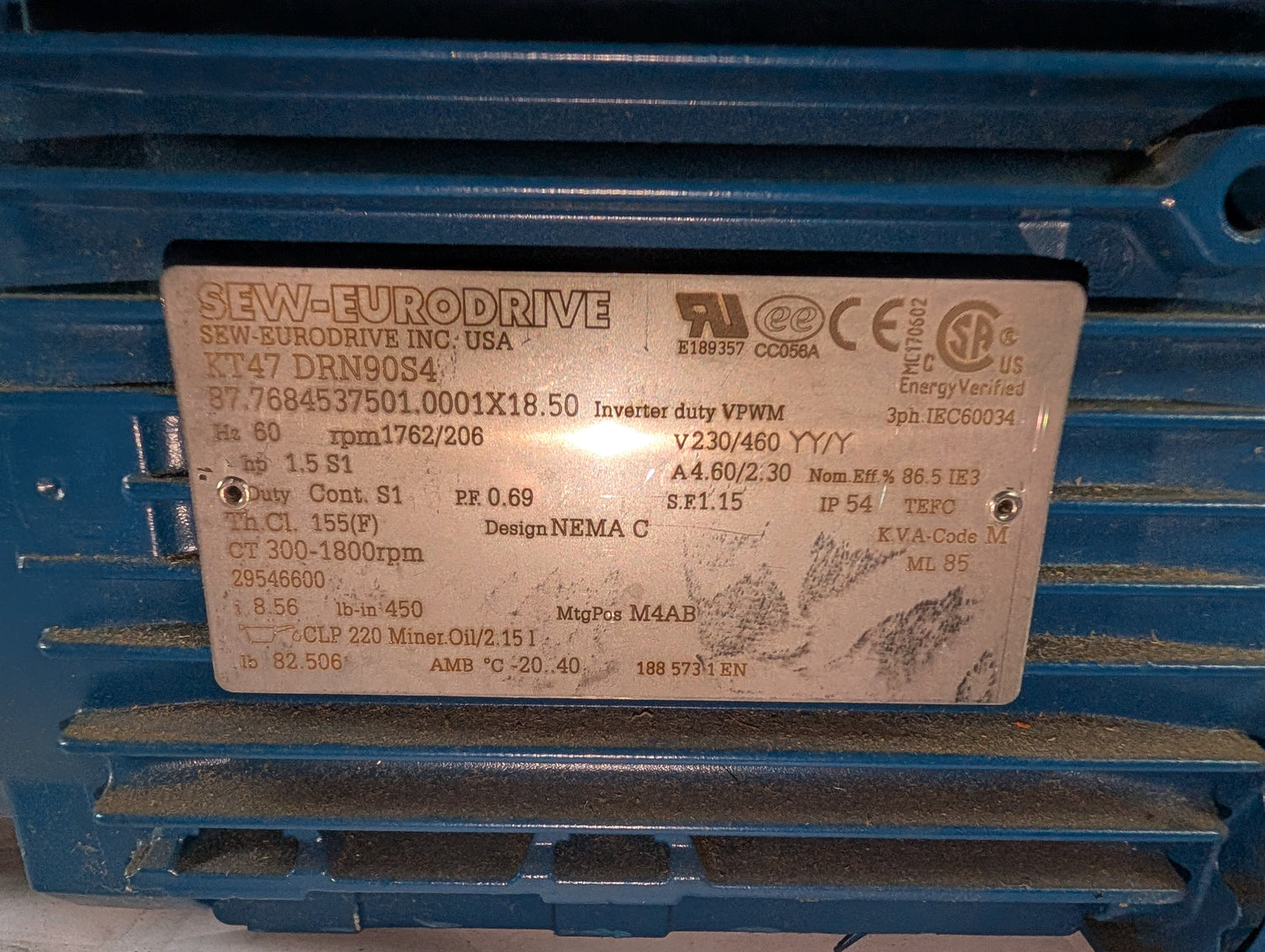 Sew-Eurodrive - 1.5 HP Helical-Bevel Gearmotor - KT47 DRN90S4 - New - BBB-PEND0-00734 is backordered and will ship as soon as it is back in stock.