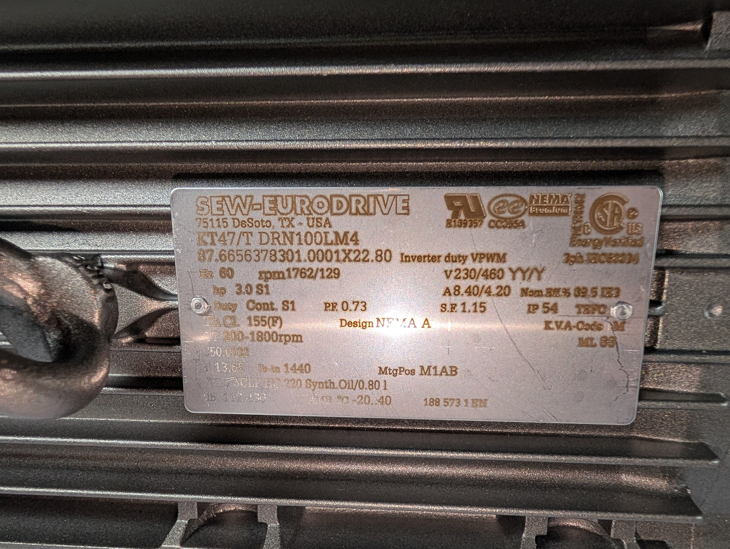 Sew - Eurodrive - 5 HP Helical Bevel Gearmotor - KT47/T DRN100LM4 - New - Big Liquidators
