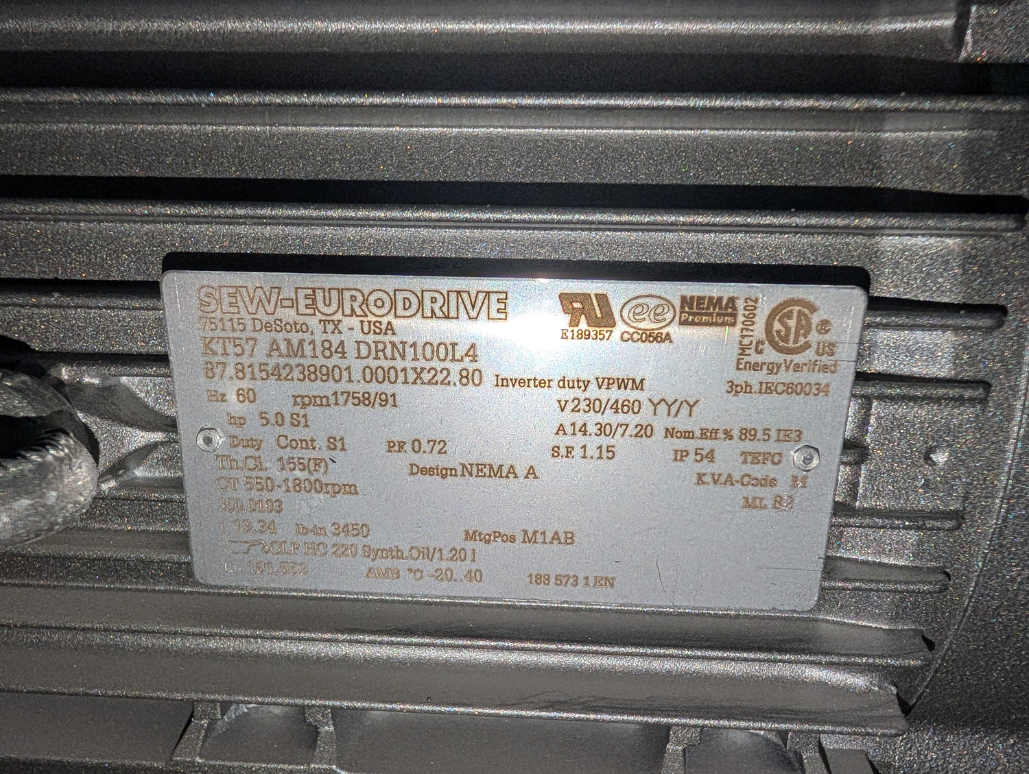 Sew-Eurodrive - 5 HP Helical Bevel Gearmotor - KT57 AM184 DRN100L4 - New - CBRCAN0-00011 is backordered and will ship as soon as it is back in stock.