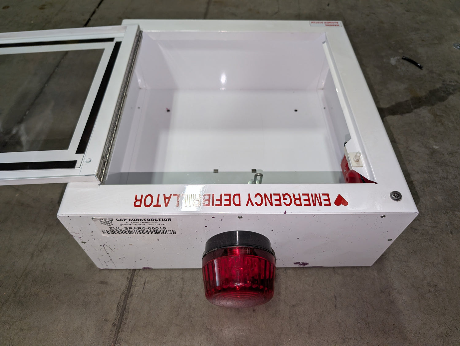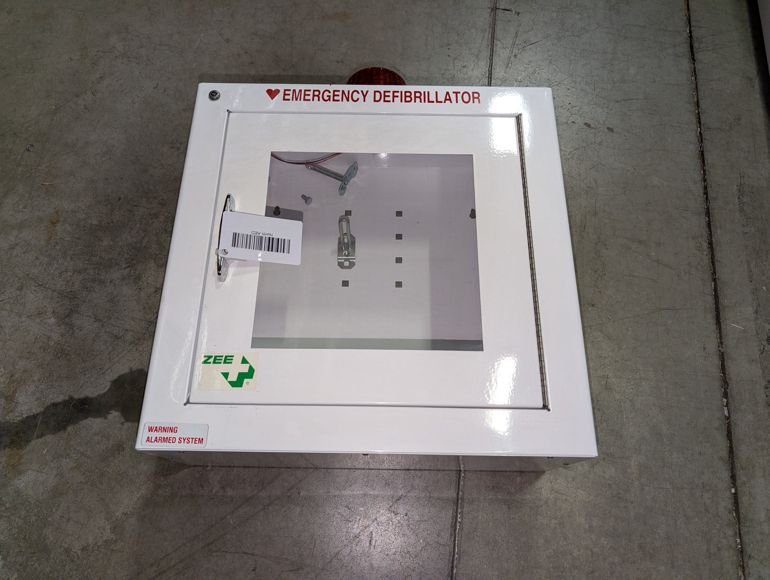 Emergency Defibrillator Cabinet with Alarm and Light - 17.5" x 17.5" x 7" - Used - ZUL-SPAR0-00015 is backordered and will ship as soon as it is back in stock.