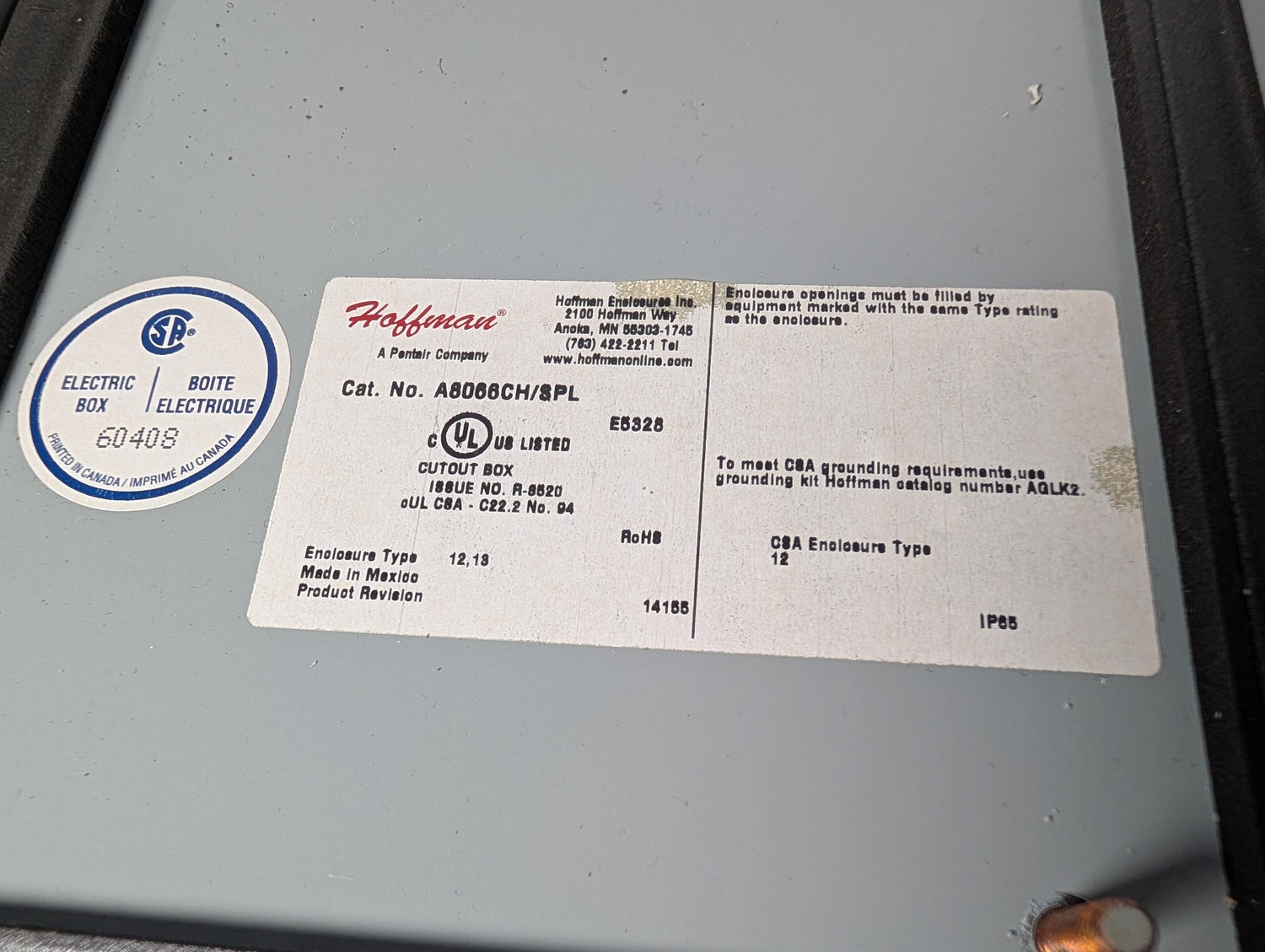 Hoffman - Electrical Box W/Misc. Electrical components - A8066CH/SPL - Used - ZUL-SPAR0-00708 is backordered and will ship as soon as it is back in stock.