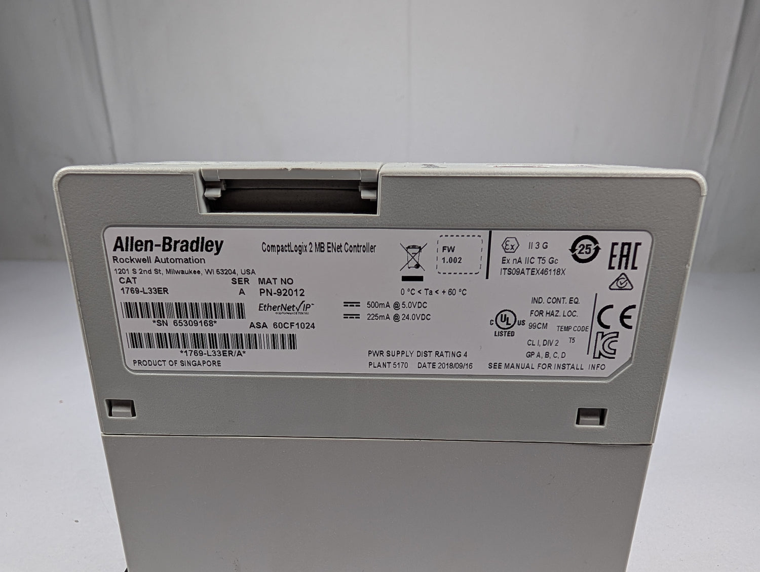 Allen Bradley - CompactLogix 2 MB ENet Controller - 1769-L33ER - Used - ZUL-LOCK0-00014 is backordered and will ship as soon as it is back in stock.