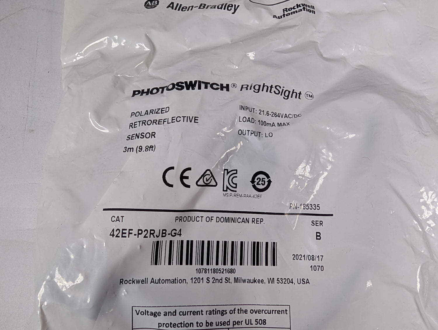 Allen Bradley - RightSight PhotoSensor - 42EF-P2RJB-G4 - New - BBB-LEWI0-00350 is backordered and will ship as soon as it is back in stock.