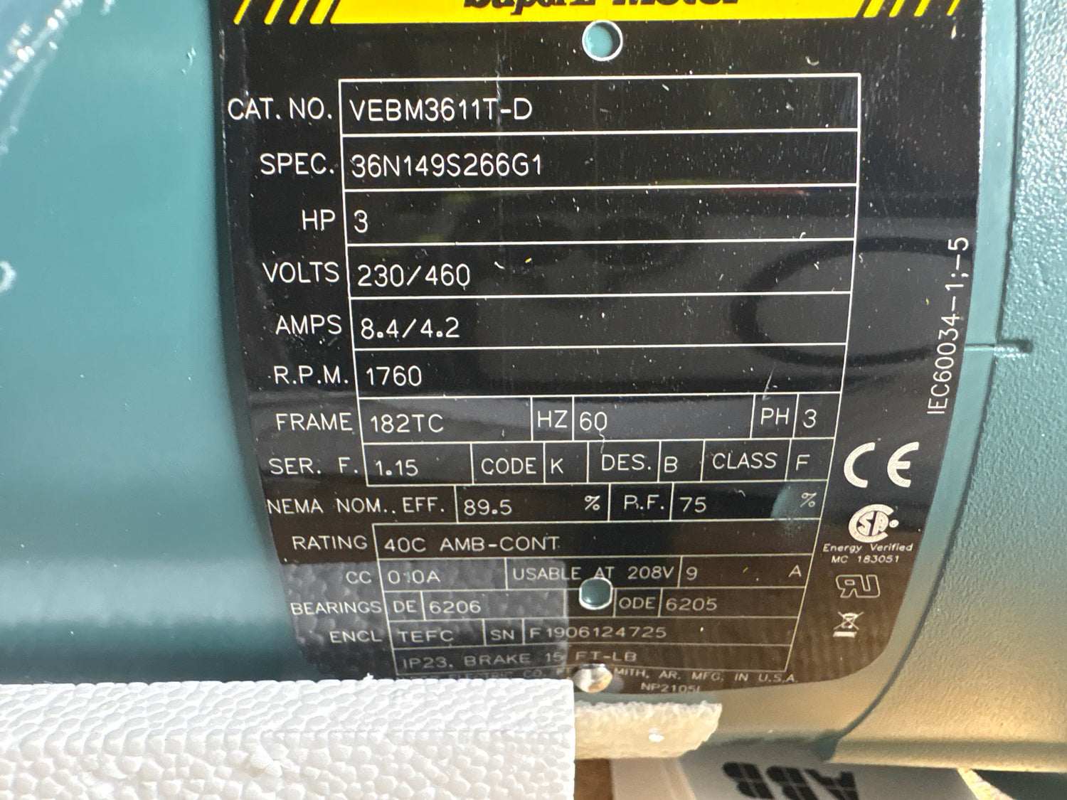 Capacity: 1760 RPM, 3 HP, 3-Phase