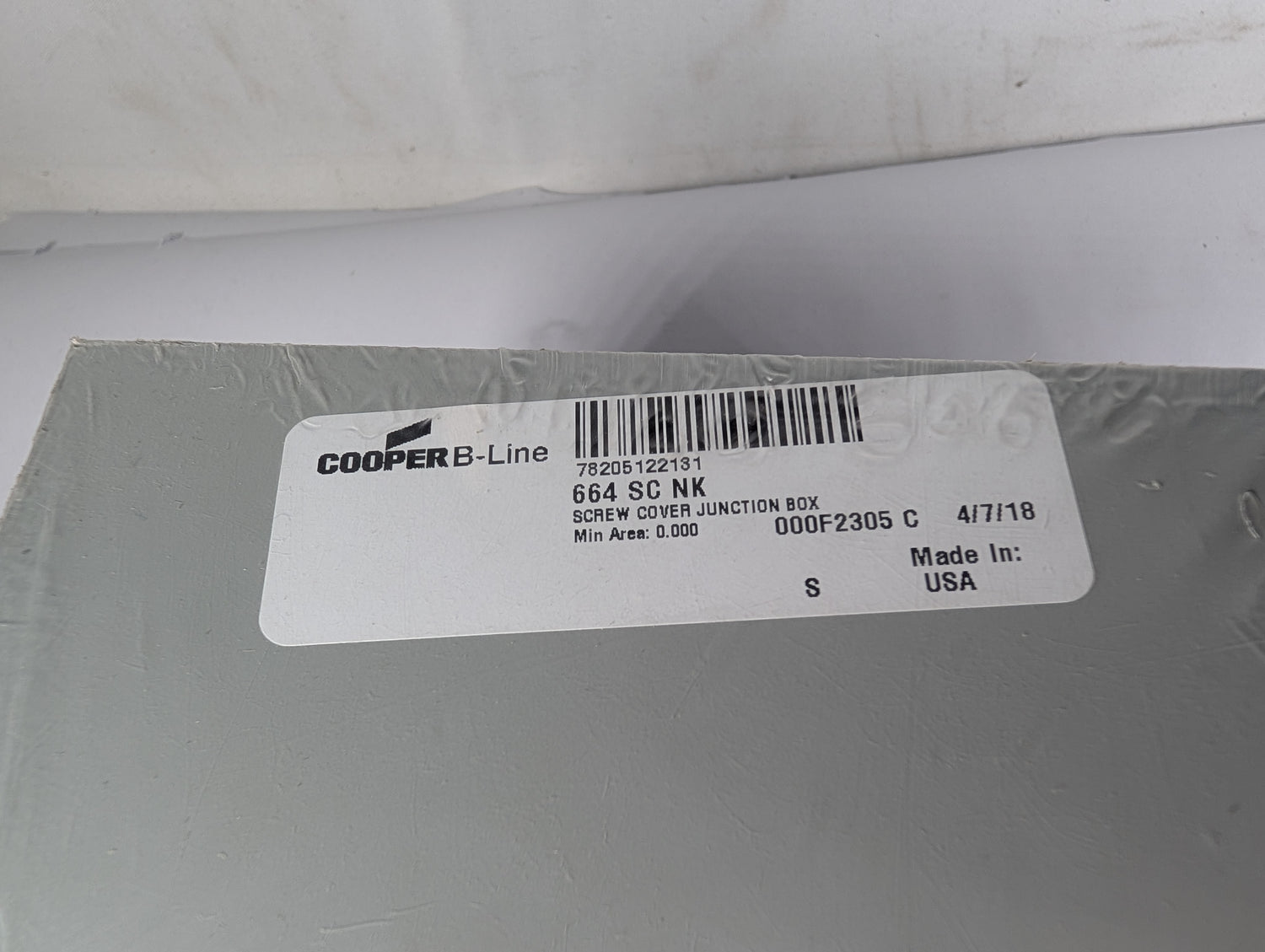 Cooper B-Line - Type 1 Junction Box 6"x6"x4" - 664 SC NK - New - ZUL-SPAR0-00933 is backordered and will ship as soon as it is back in stock.