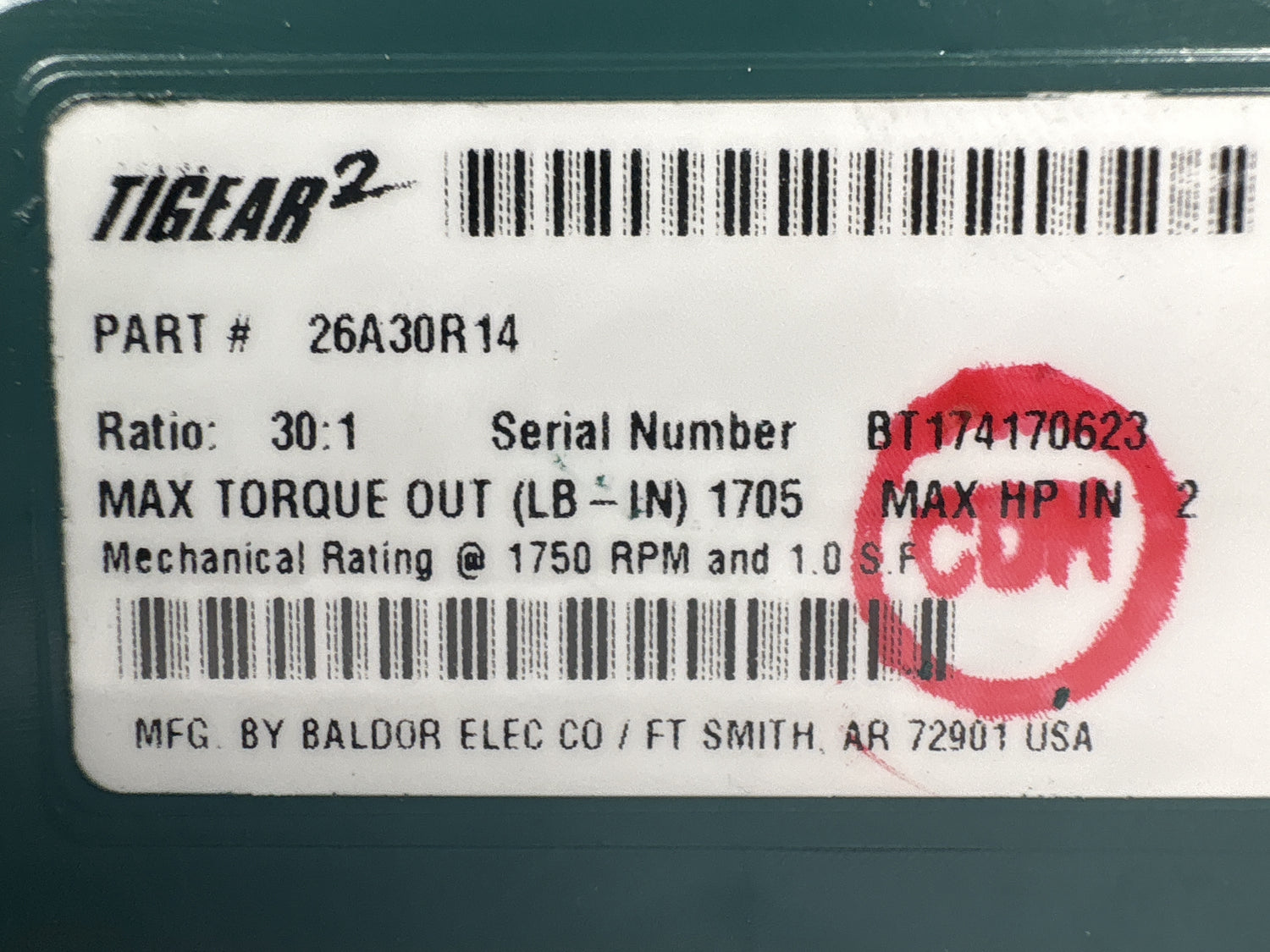 Dodge Tigear - 30:1 Gear Reducer - 26A30R14 - New - BBB-LEWI0-00386 is backordered and will ship as soon as it is back in stock.